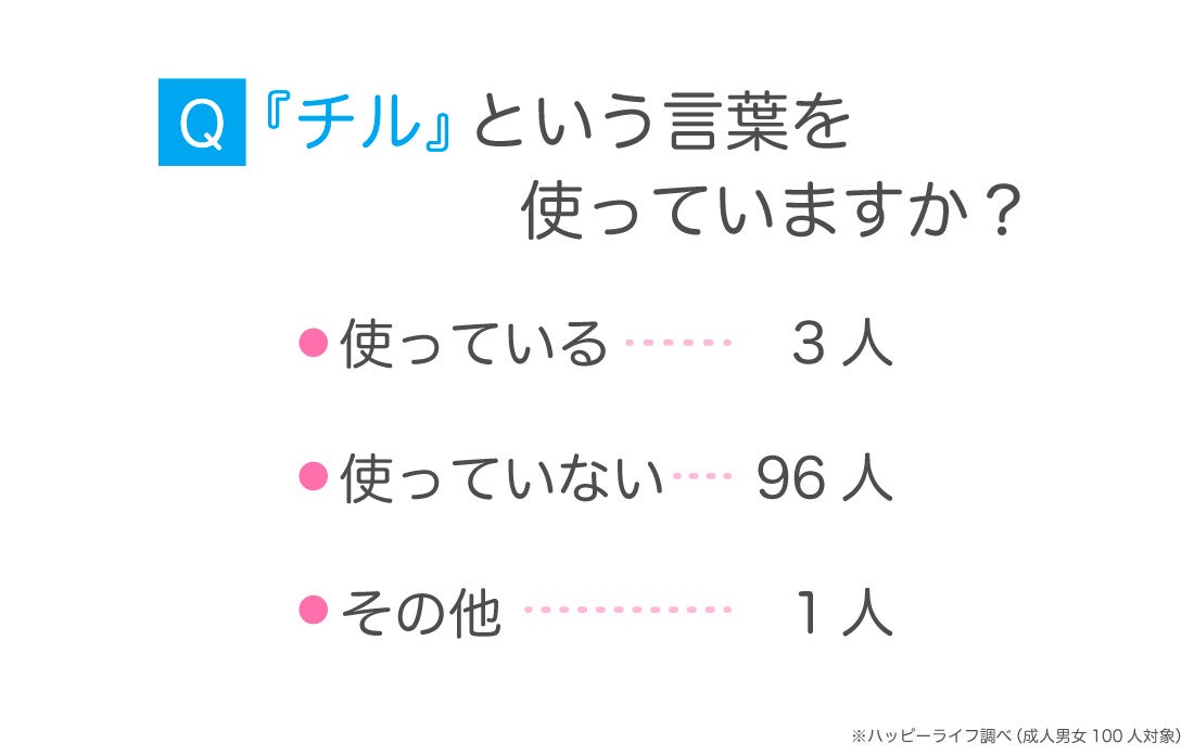実際にチルという言葉を使っていないと答えた人が96人でした。