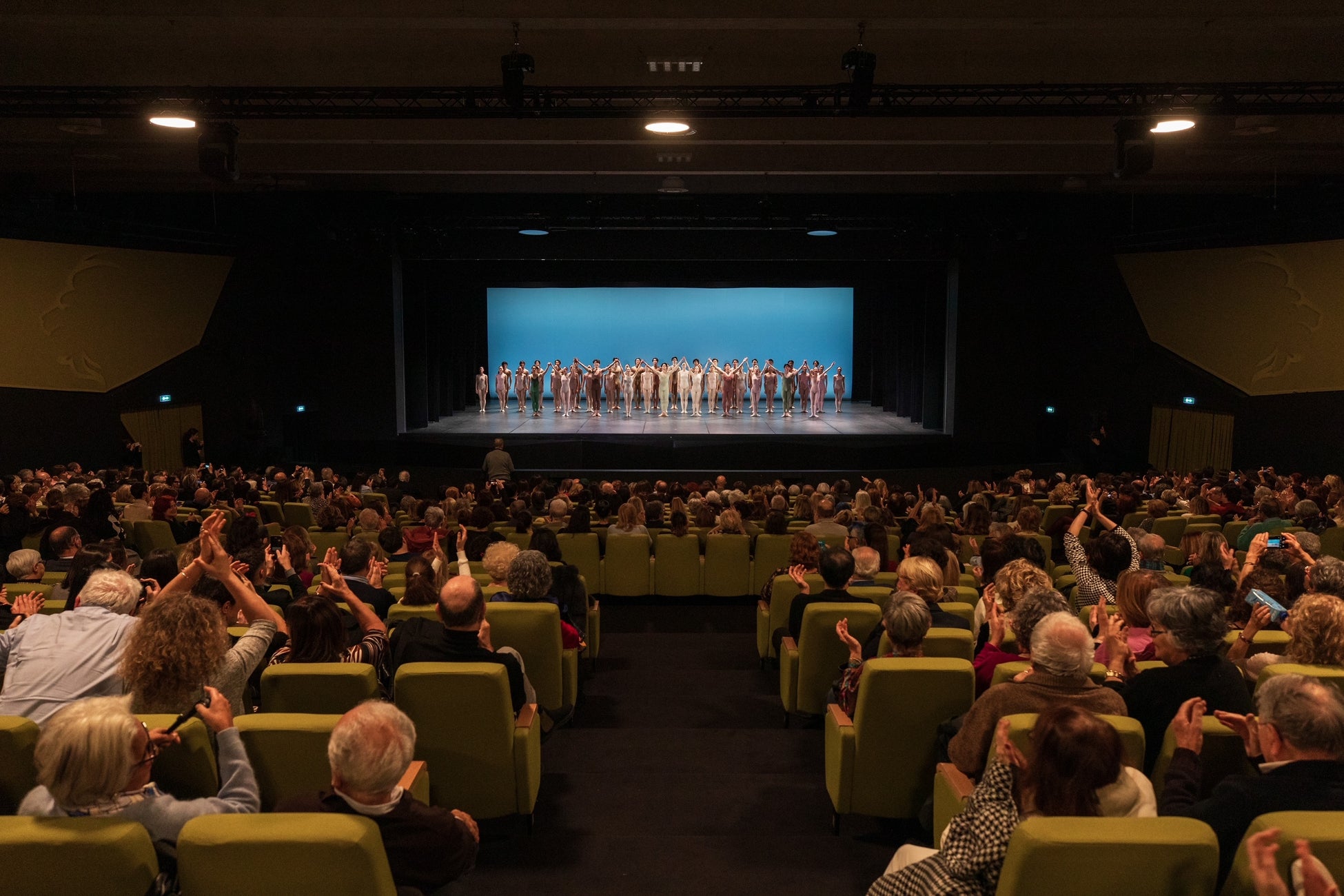 東京バレエ団のダンサーたちのテクニックと一致性は非の打ち所がない。肉体のマグマ(混合した感情や情熱)、繊維状にも見える裸体、何世代にも亘る生来の体型であろうか、50人もの体が絶え間なく動くのだが、それはまるで渦を巻く物体のように幾何学的形状や大きさを構成したり解体したりするのだ。初日からペトゥルツェッリ劇場の多くの客席を埋めた観客は日本のバレエ団の公演に盛大なる拍手を送った。
