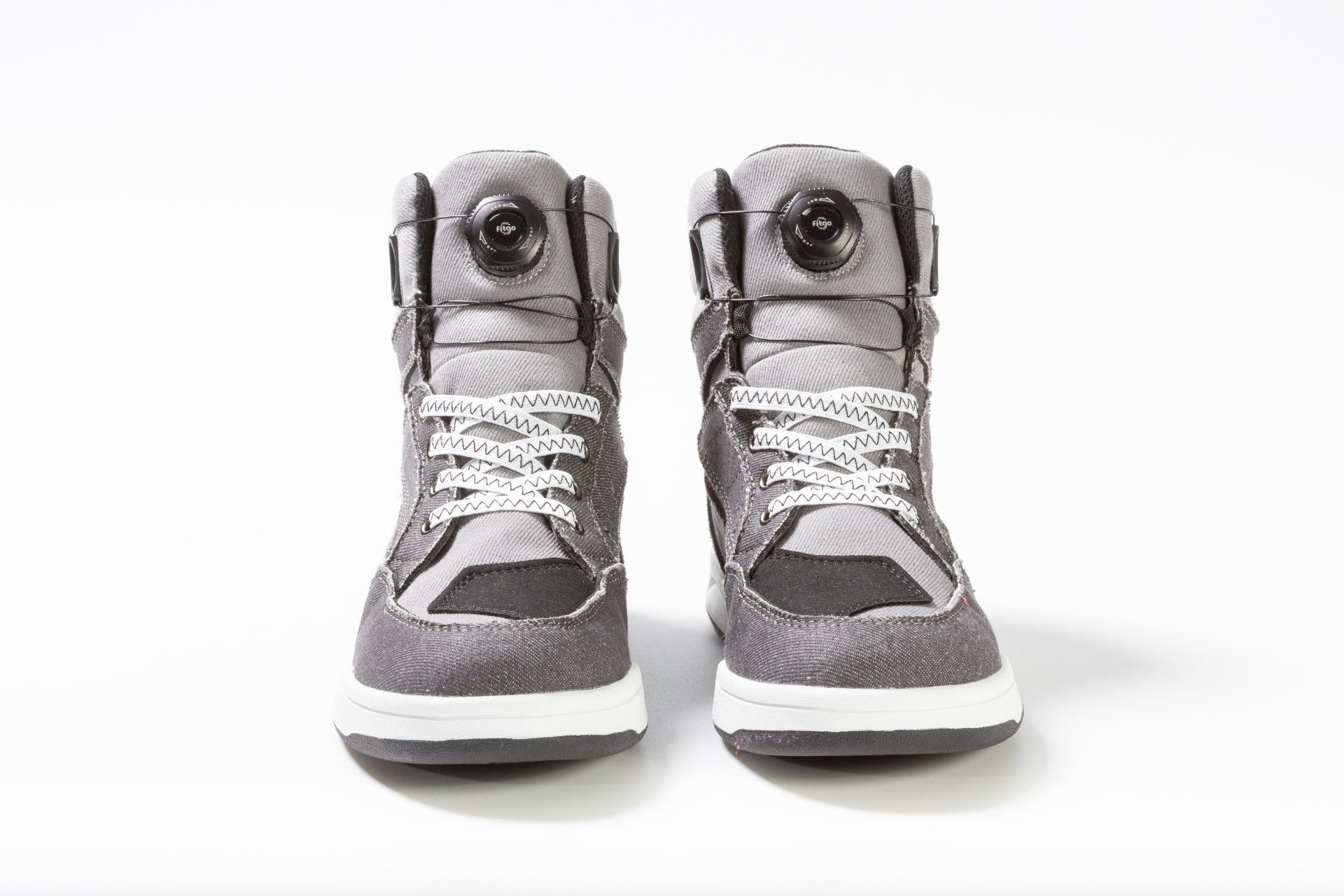 さらに、ハイカットのスタイルとダイヤル式シューレースの採用により、衝撃を受けた際に靴が脱げるのを防ぎ、安全性を高めています。