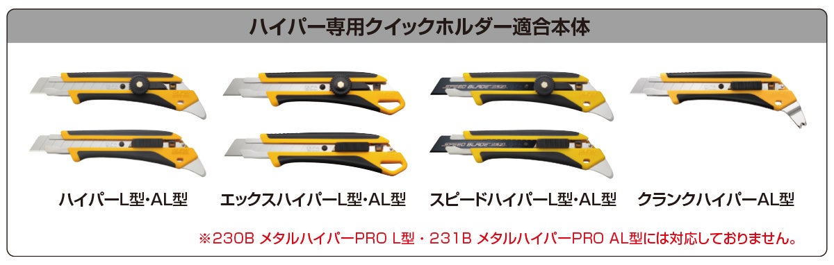 オルファ株式会社(本社:大阪府大阪市、代表取締役:岡田真一)は、当社の「X(エックス)デザイン・ハイパーシリーズ」の大型刃(刃幅18mm)専用設計のカッターホルダーである「ハイパー専用クイックホルダー」、そのホルダーとカッターナイフのセット販売品である「ハイパー専用クイックホルダー(ハイパーAL型付)」の2商品を、2024年4月26日(金)より発売いたします。