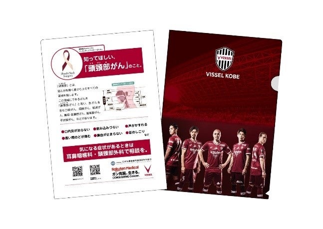- 同日開催されるヴィッセル神戸公式戦の観戦者に、頭頸部がんに関する情報を掲載した本学会・楽天メディカル・ヴィッセル神戸のコラボクリアファイルを先着10,000名様に配布。
