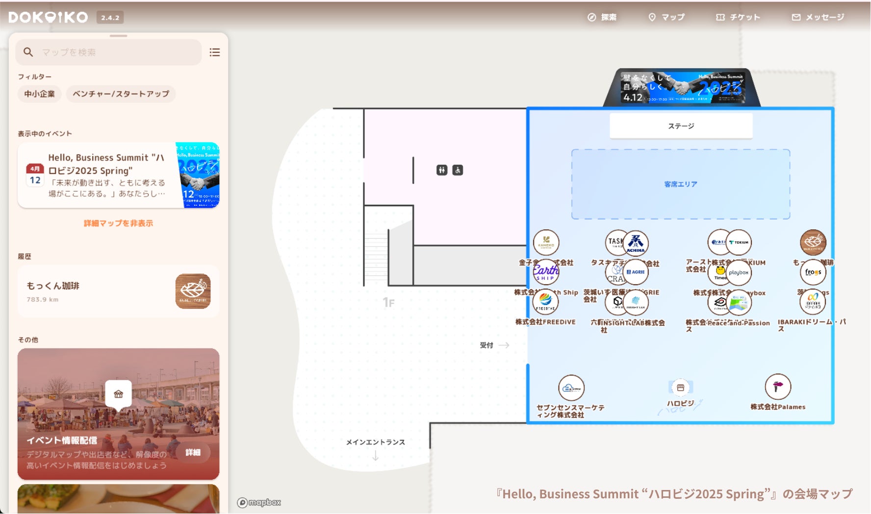 本イベントでは、筑波大発ベンチャー「株式会社Palames」とコラボレーションし、デジタルマップや出展詳細などイベントの魅力を、簡単かつ詳しく配信できるサービス「dokoiko」を導入しています!