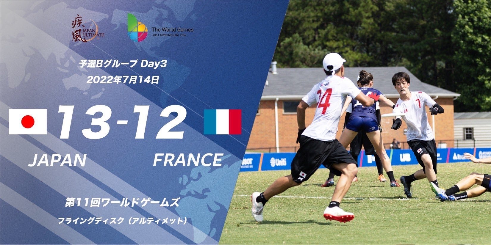 7/14 11:30(現地時間): 予選リーグ 日本 13 - 12 フランス