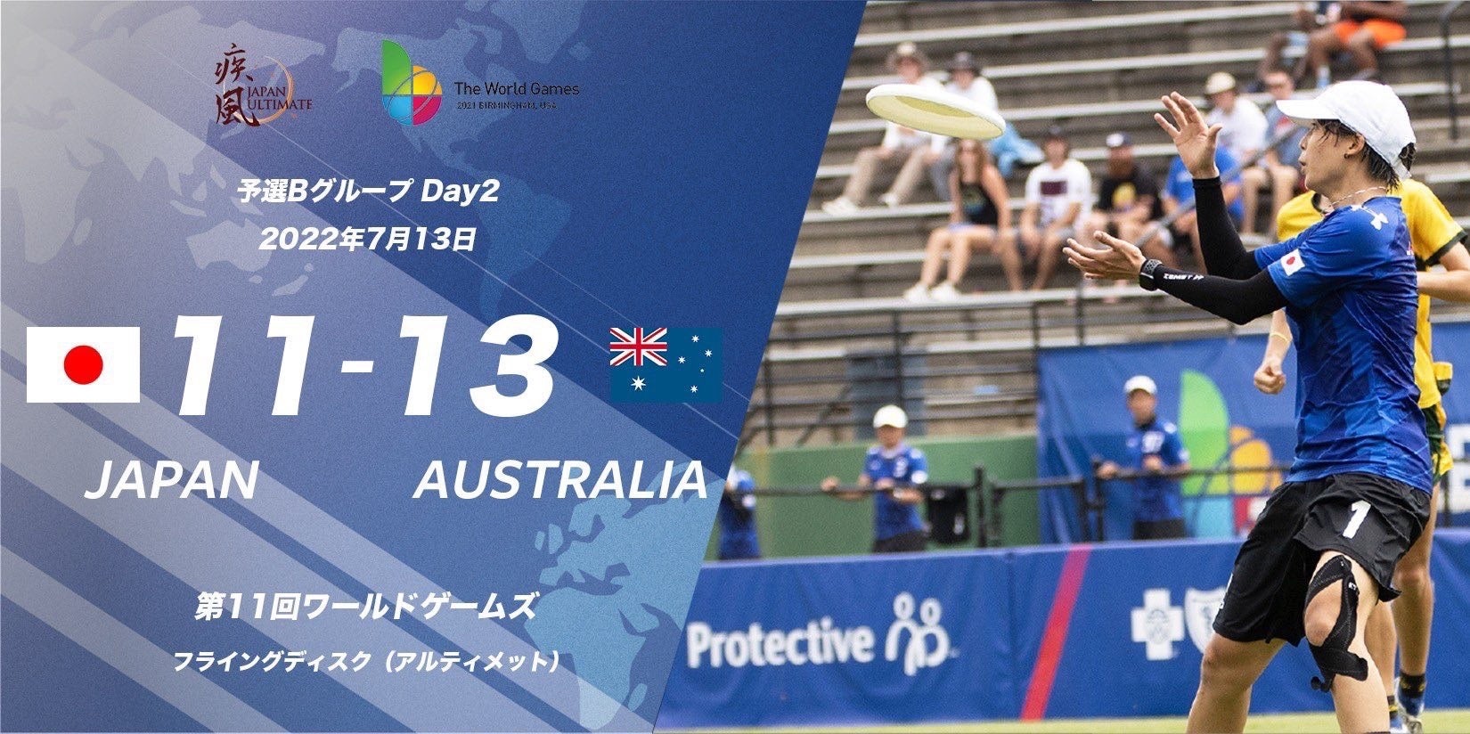 7/13 9:30(現地時間): 予選リーグ 日本 11 - 13 オーストラリア