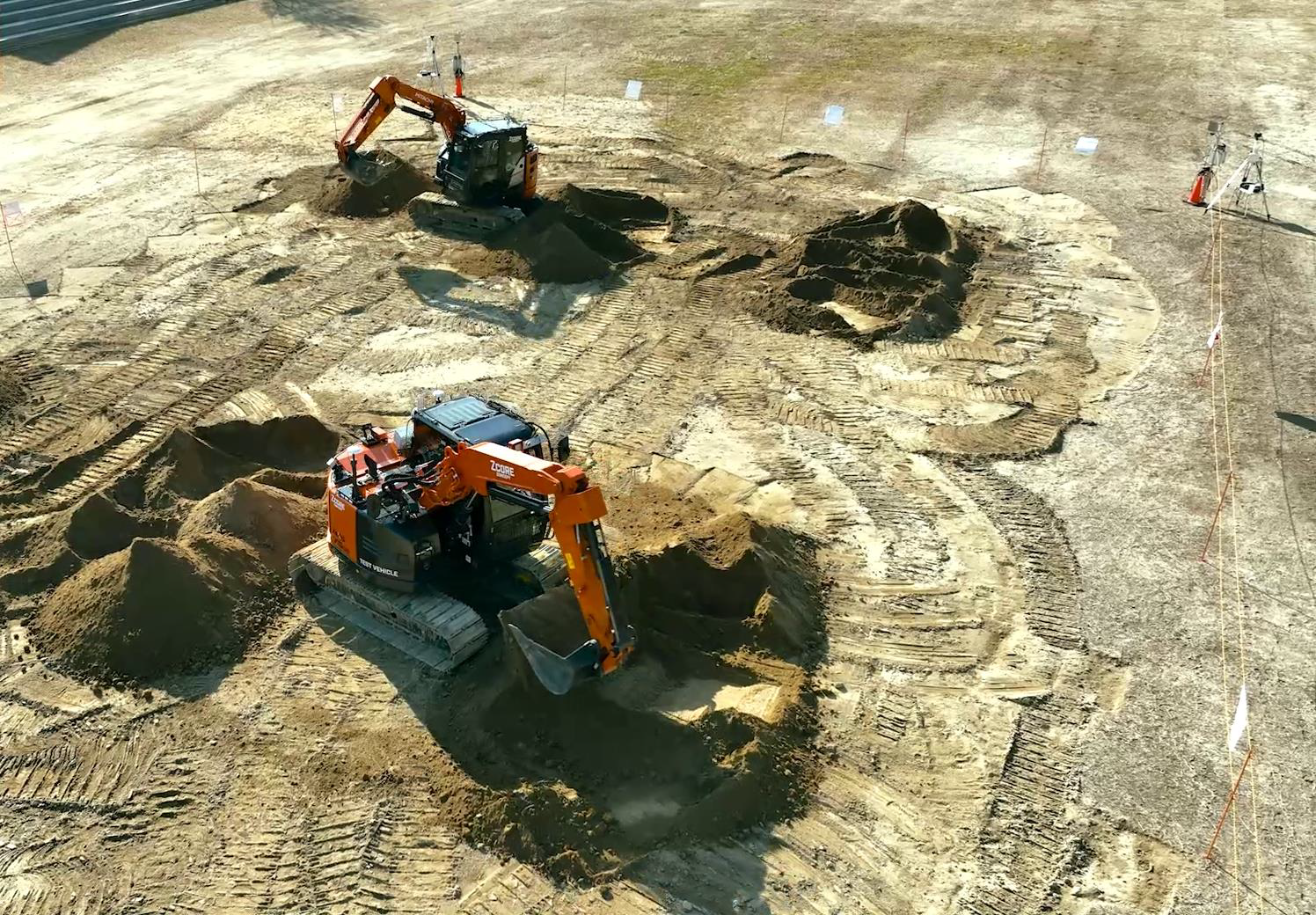 前田建設、日立建機と共同で複数台の自律運転油圧ショベルによる自動施工の実用性を確認