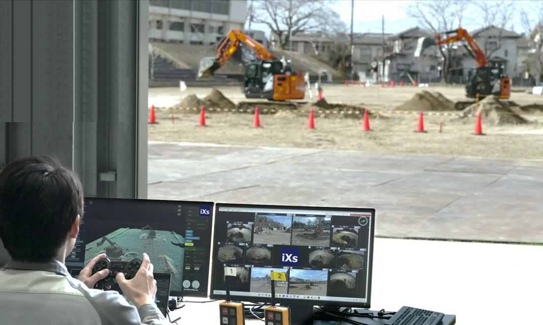 写真2.自律運転油圧ショベルを遠隔から操作、管理する様子