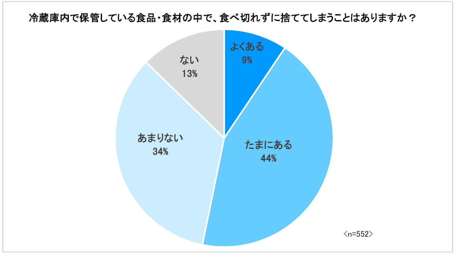- 冷蔵庫内で保管している食品・食材を廃棄したことがある人は、全体の53%。
