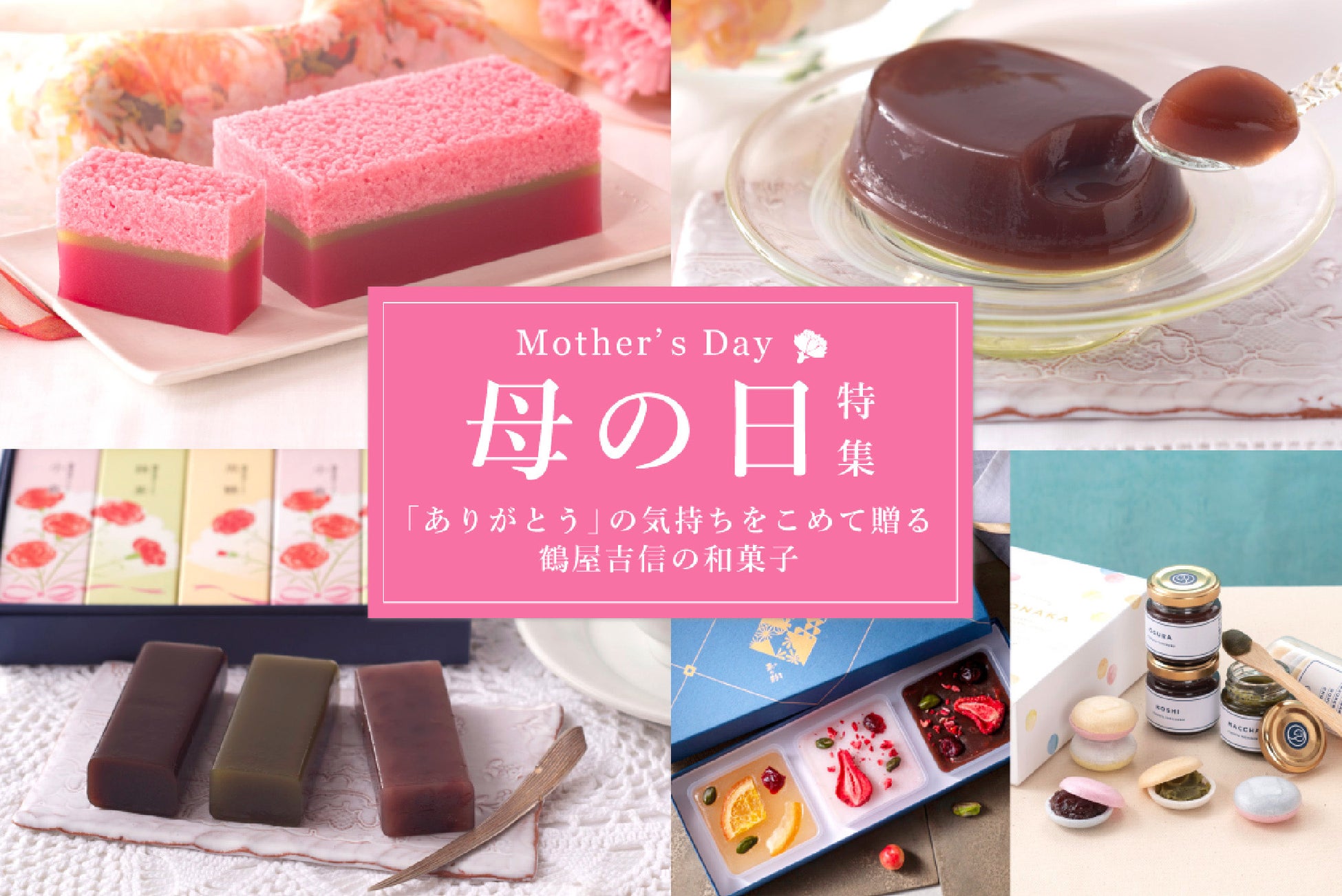 母の日特集|ありがとうの気持ちを贈る、鶴屋吉信のおいしく華やかな和菓子をご紹介します。