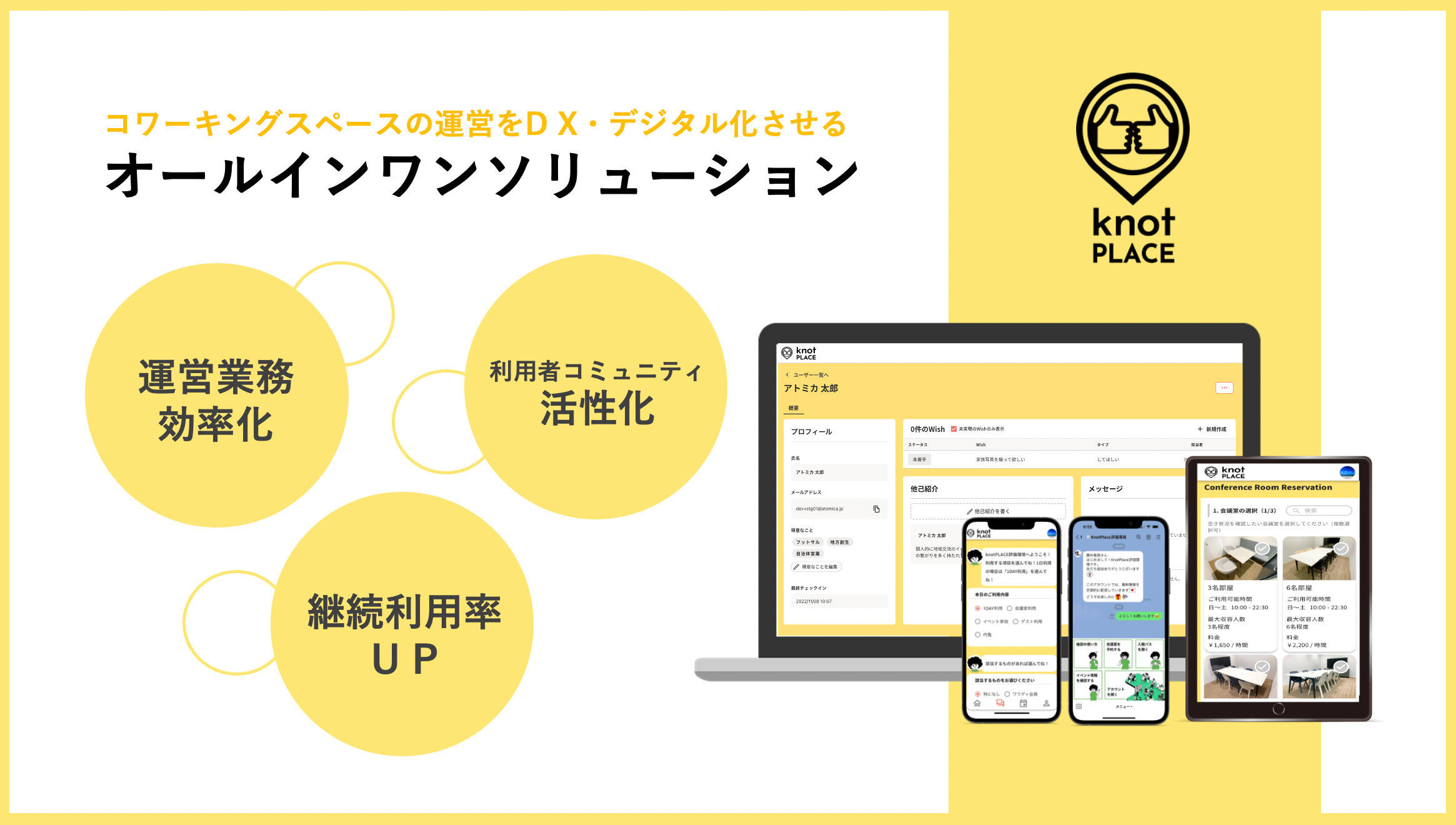 ソーシャルコワーキングスタートアップの株式会社ATOMica(本社:宮崎県宮崎市、代表取締役:嶋田 瑞生、南原 一輝、以下ATOMica)は、26拠点のコワーキングスペースを自ら運営する中で培ってきた、施設・コミュニティ・イベント運営のノウハウを集約し開発したコワーキングスペース運営システム「knotPLACE(ノットプレイス)」の機能を大幅にアップデートし、7月13日(木)より正式に外部提供を開始いたします。