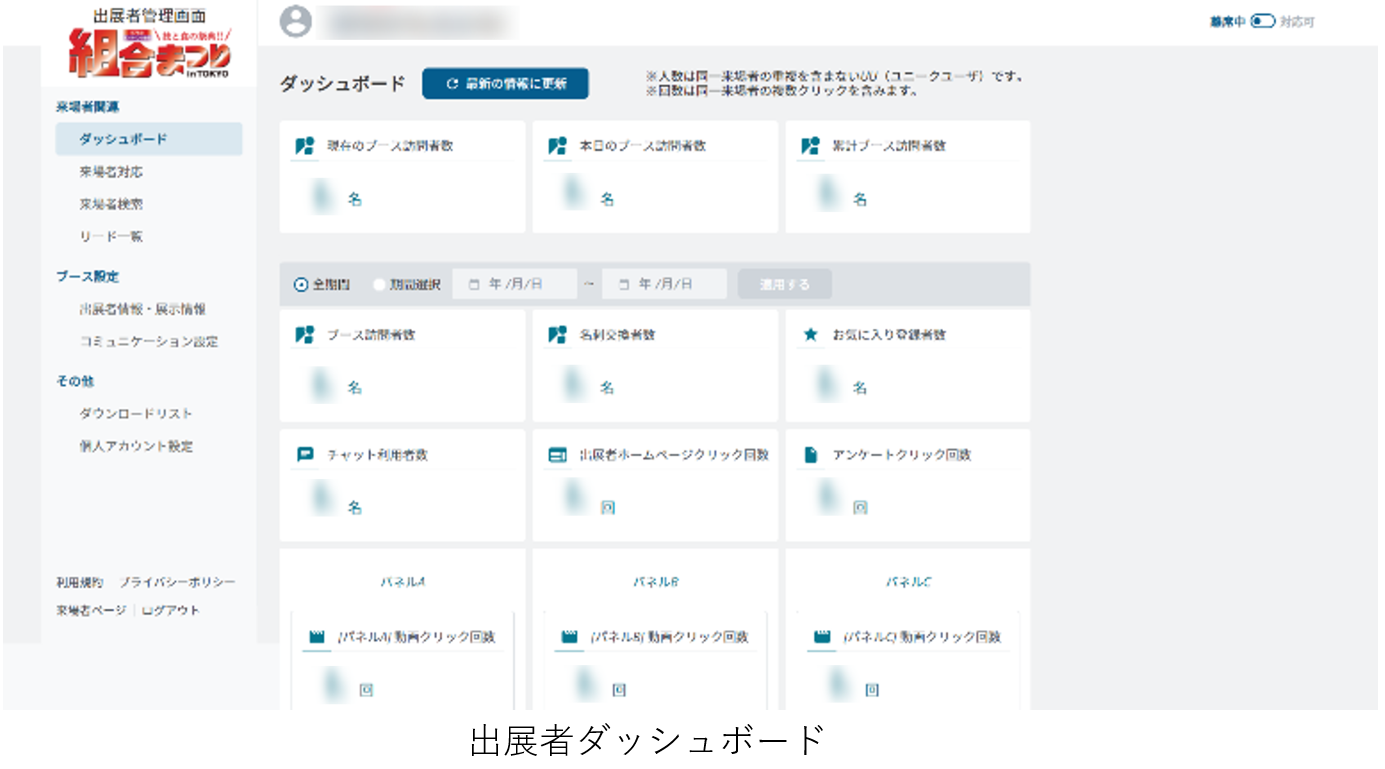 来場者数や名刺交換者数など、ブースの状況を一目瞭然で把握することができます。
