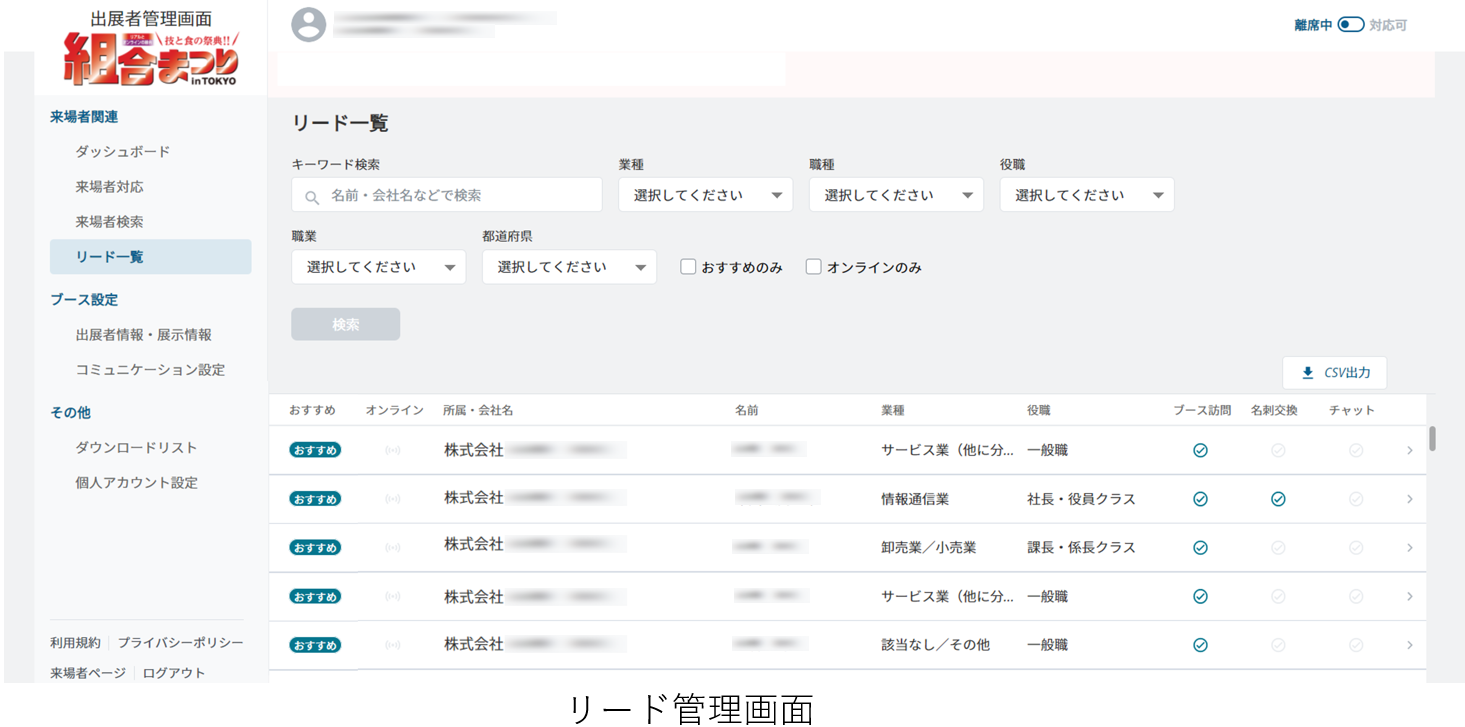 リード情報もCSVでダウンロード可能で、即日に営業活動を行うことができます。
