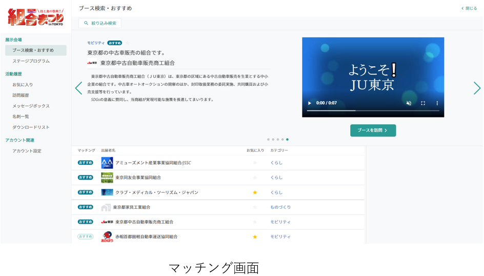 - 「技と食の祭典!! 組合まつり in TOKYO」における「そのまま展示会」Ver.2の機能紹介
