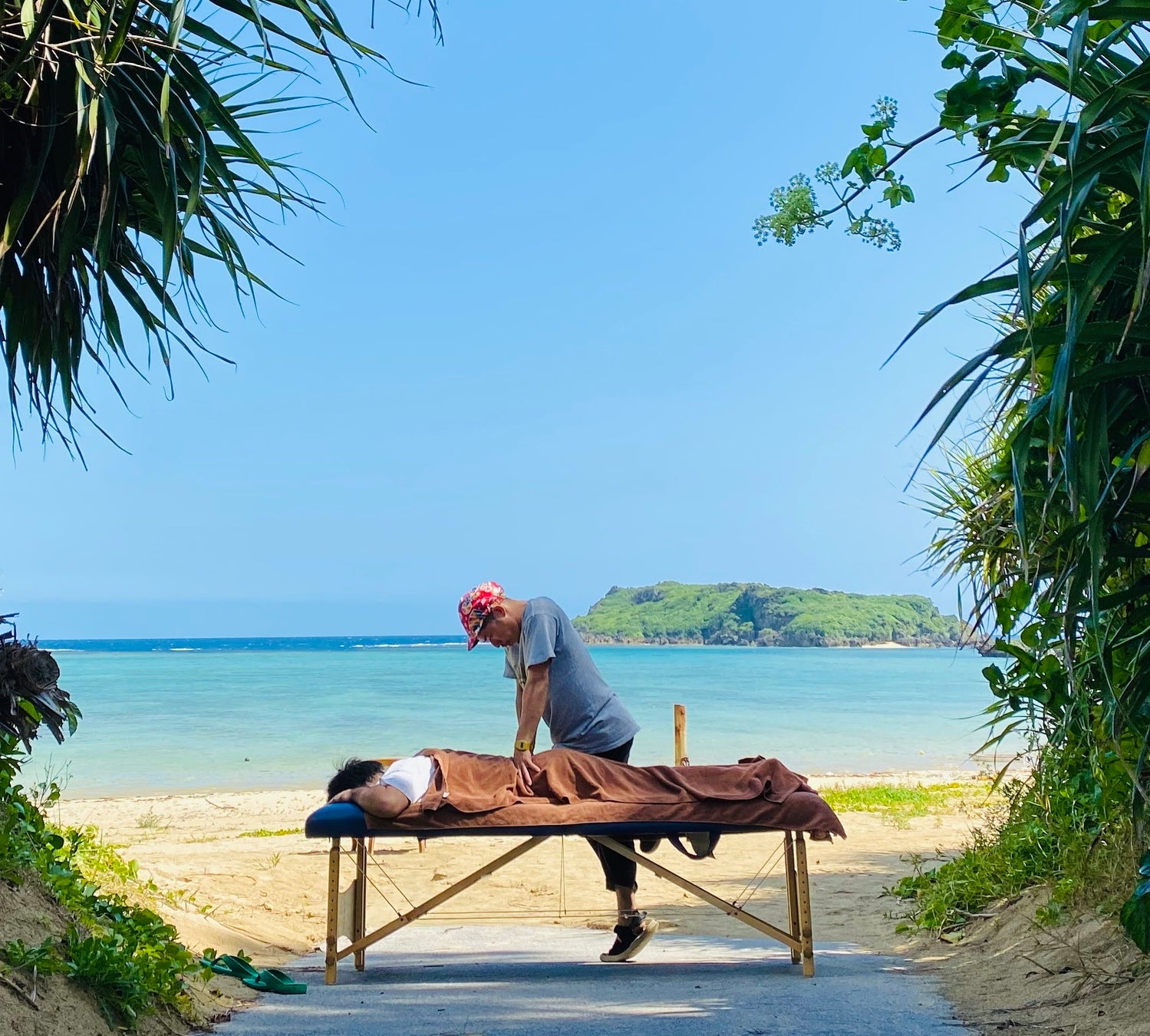 世界遺産を眺め、沖縄の心地よい風を感じながら絶景整体&マッサージ。サウナで温まった身体を解きほぐし、身も心もデトックス。