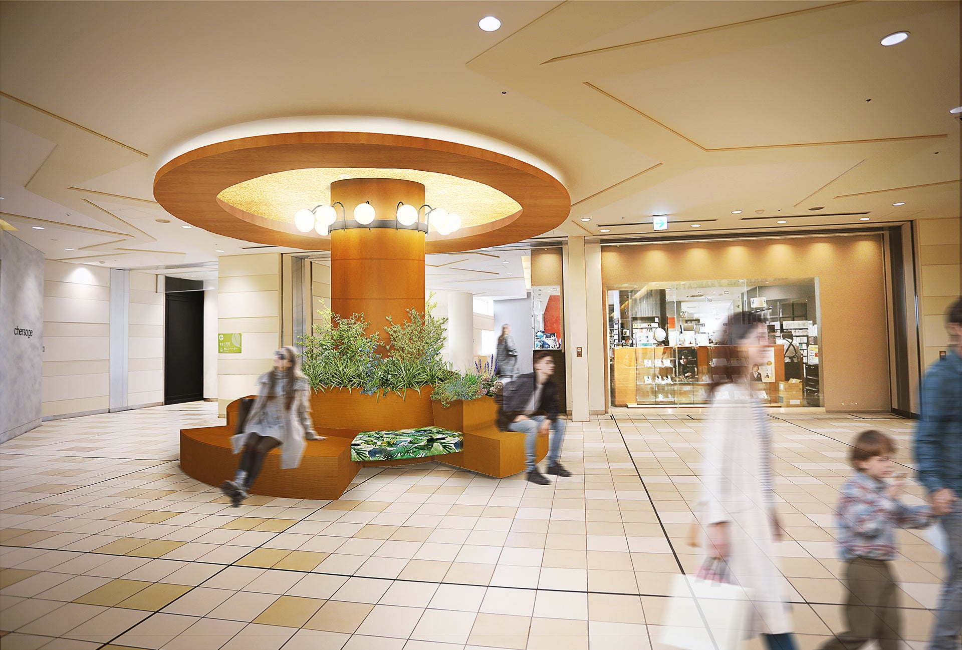 “こころもからだも満たされる”というリニューアルコンセプトのもと、ゲートプラザの共用部に、光や緑を感じられるデザインを取り入れ、ひと休みできる広場や感性を刺激するスポットを設置します。