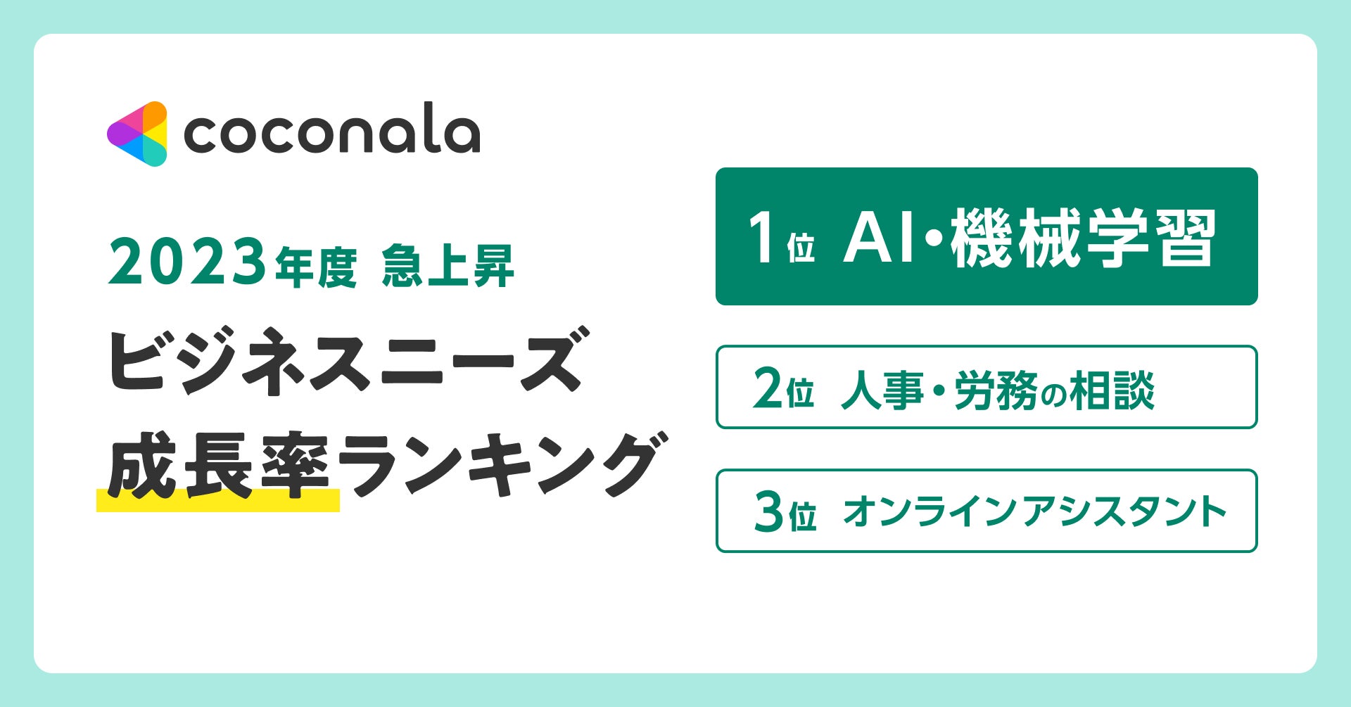 ココナラが23年度の「ビジネスニーズ成長率ランキング」を発表!AI・機械学習が躍進!専門人材の外注トレンドが浮き彫りに