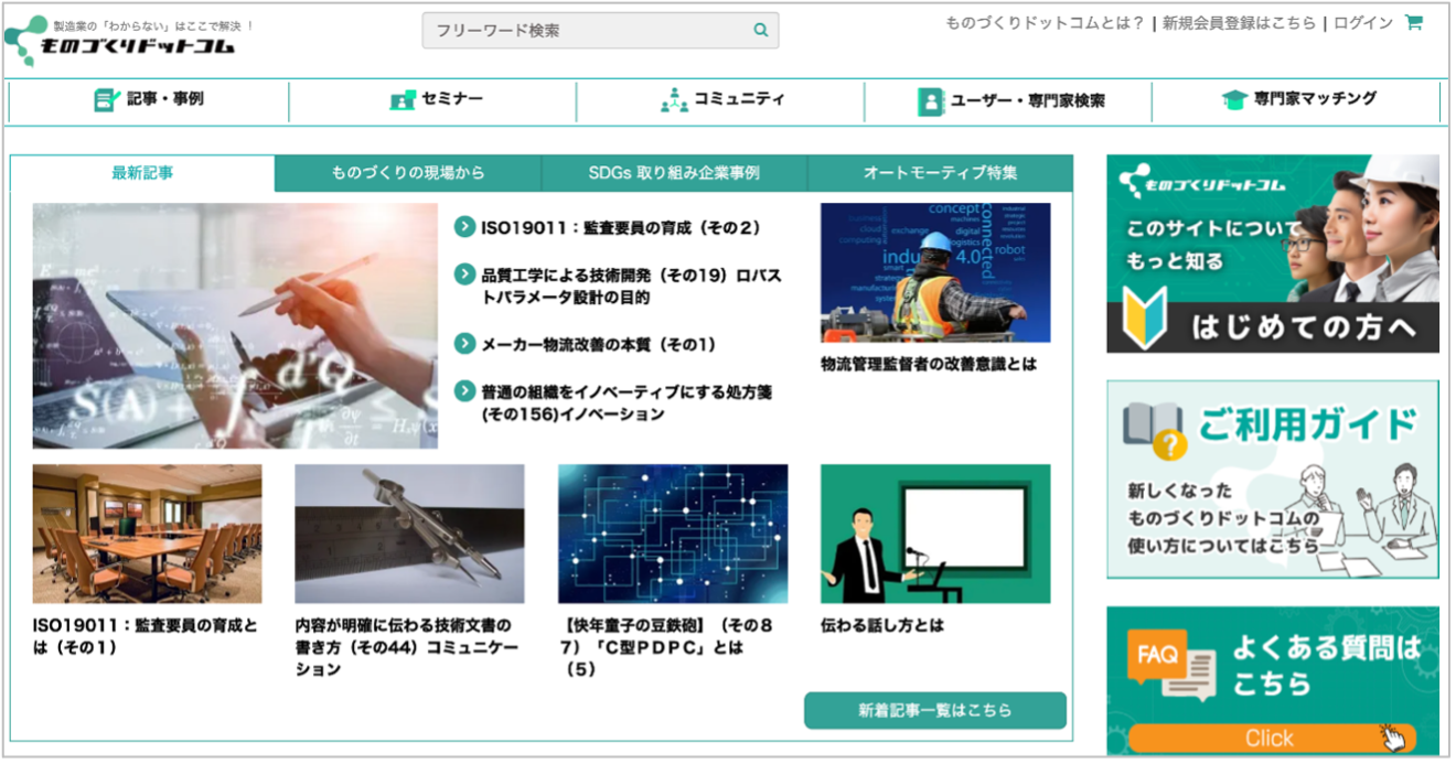 産業革新研究所は、会員数約40,000人、累積訪問者数600万人を超える日本最大級の製造業の課題解決メディア『ものづくりドットコム』を運営しています。「ものづくりドットコム」では、製造業従事者の疑問や質問の解決に繋がる専門的な技法や用語の解説記事、製造現場の事例記事、セミナーなどのコンテンツを提供しています。また200名を超えるコンサルタントや大学教授、企業に所属する研究職・開発職・技術職の方々からなる専門家課題解決支援のマッチングサービスも提供し、製造業従事者の課題解決に貢献します。