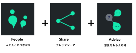 サービスロゴには、ものづくりに携わる全ての方々の人脈・ノウハウ・知識といった「ナレッジ」をネットワーク化することで集合知を形成するプラットフォームを提供し、そのプラットフォームにより、ものづくりドットコムはユーザーのキャリア形成や課題解決、イノベーションの起点となり、社会に貢献していきたいという思いを込めています。また、「人と人とのつながり」、「ナレッジシェア」、「意見をもらえる場」という3つの要素をシンプルな形状に概念化、それらをさらに融合した形状で表現しています。