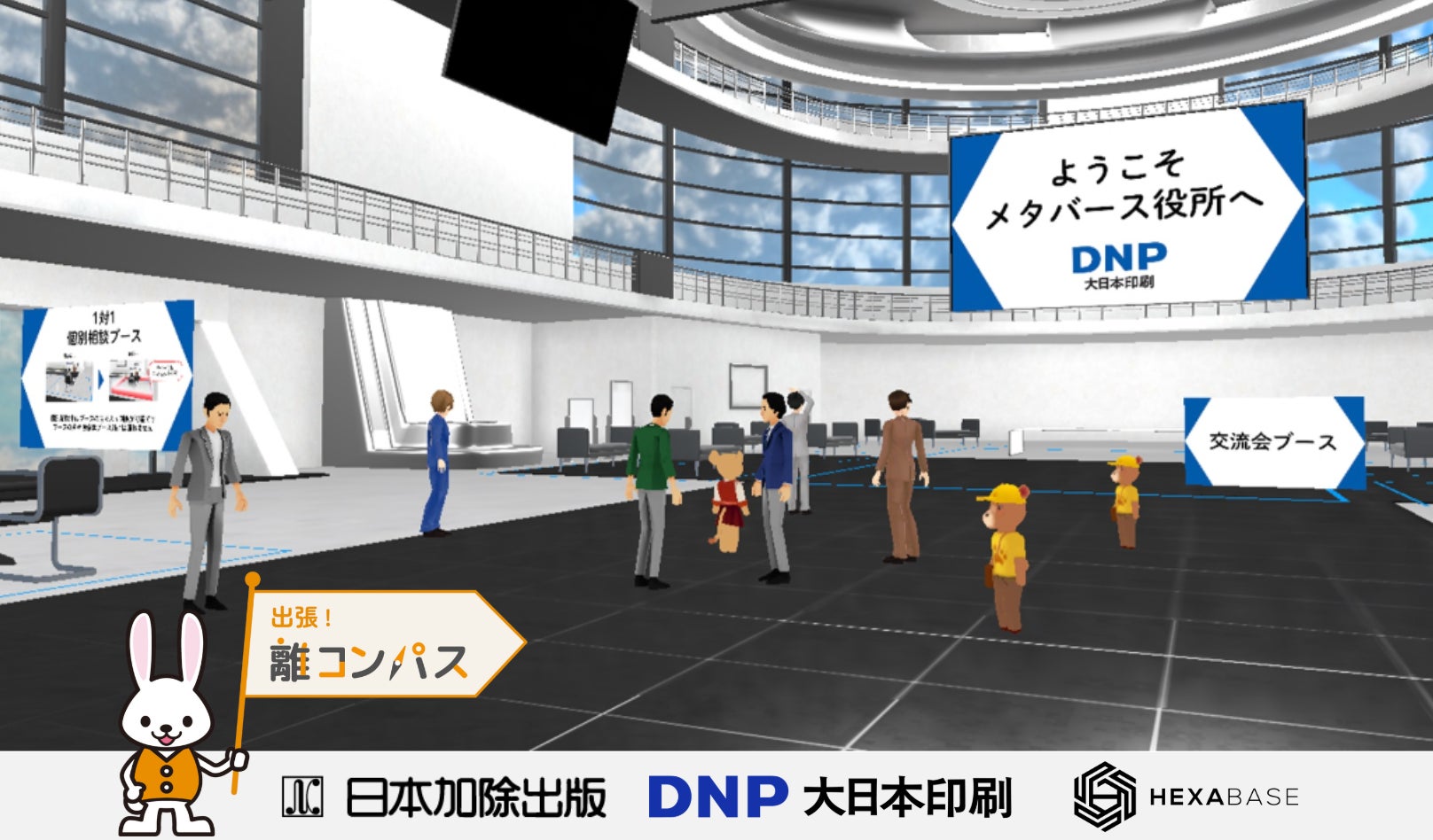 株式会社Hexabase(代表取締役CEO:岩崎英俊、所在地:東京都千代田区、以下ヘキサベース)、大日本印刷株式会社(代表取締役社長:北島義斉 所在地:東京都新宿区 以下DNP)、日本加除出版(代表取締役社長:和田裕、所在地:東京都豊島区)の3社が協業し、2025年初春に、行政のDX サービス「メタバース役所」での「離コンパス」の提供を開始します。