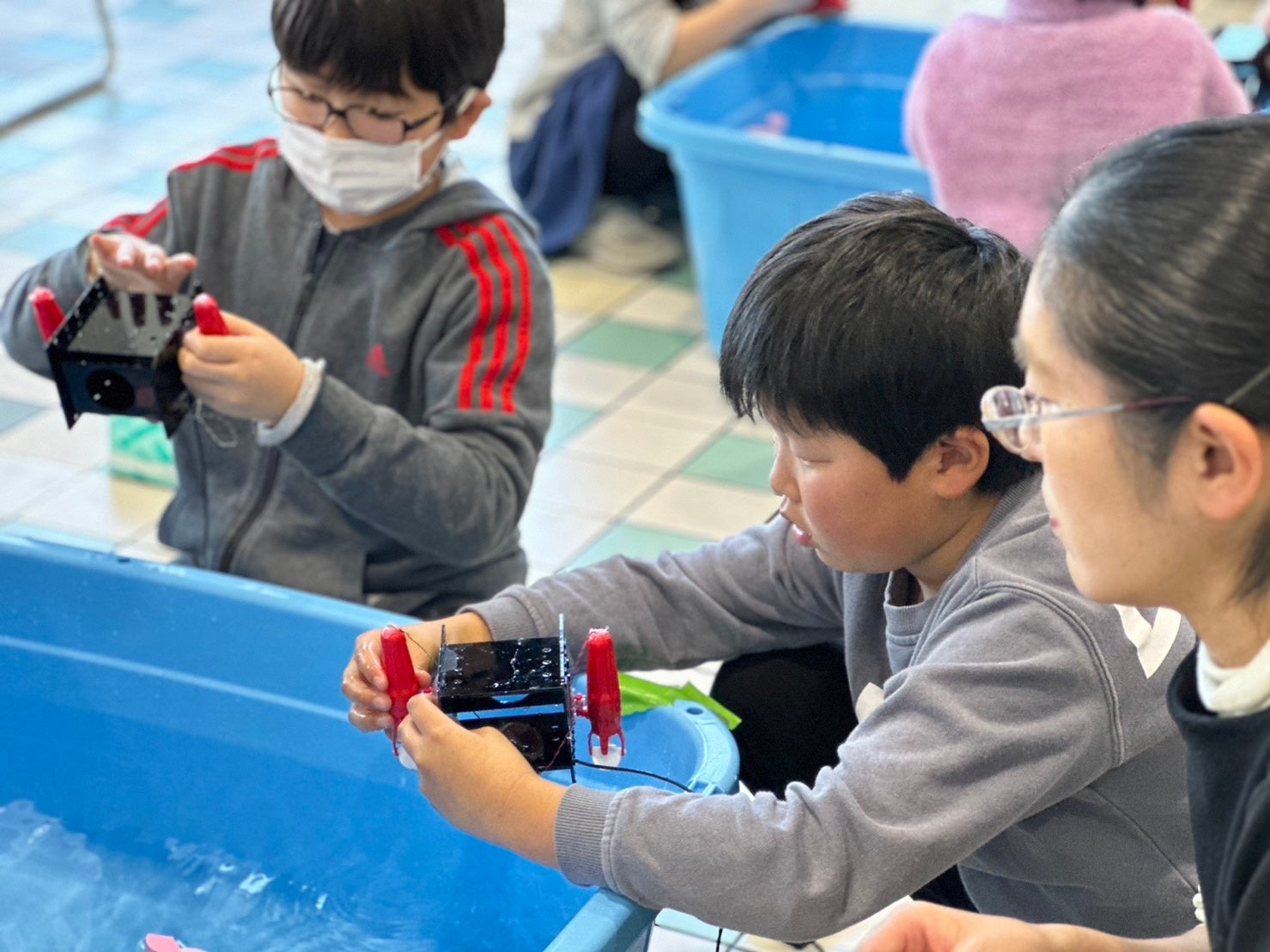 12月9日(土)~10日(日)には「海洋教育プログラム」を開催し、大洗およびその周辺の小中学生とMOL 小中学生アンバサダー(註1)107名と、その保護者を含めた約220名が参加しました。イノカの環境移送技術®を駆使して海を再現した水槽を見ながら、大洗の海の現状をクイズ形式で学習。海中調査で使用する水中ドローンを自分たちで組み立て操作を練習し、海を身近に感じながら海の環境について楽しく学びました。