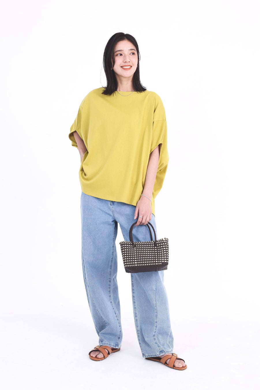ドルマンカットソーは夏に大活躍する消臭加工と汗ジミ防止加工付きです。シルエットが綺麗なカーブシルエットデニムを合わせると、ほんのりトレンド感もプラスしてくれます。