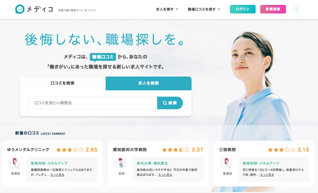 「メディコ」は、医療・介護業界の職場口コミ・求人サイトです。