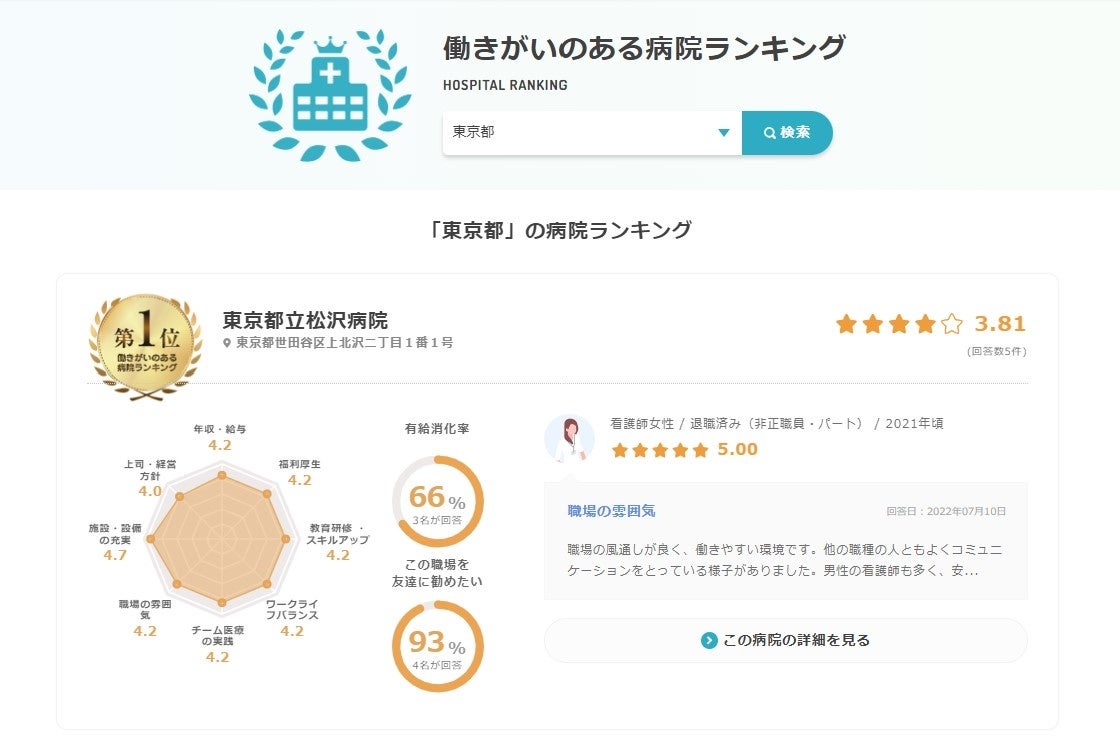 職場口コミや評価、働きがいのある病院ランキング、年収レポートなどを無料で閲覧できます。