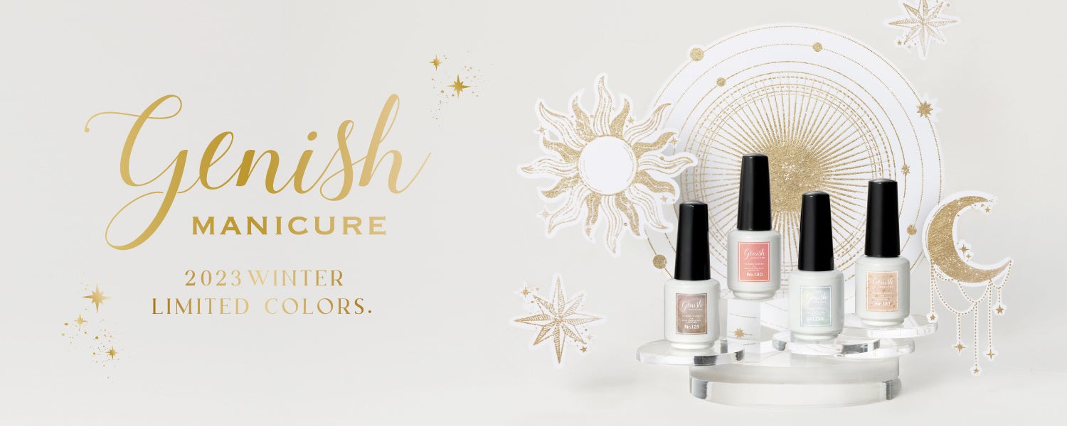 ジェルネイル成分(光硬化樹脂)配合「ジーニッシュマニキュア」から冬の限定色が登場します。太陽や月、星の導きからインスピレーションを受け、神秘的な占星術の世界を繊細なラメやパールで表現したコレクション。