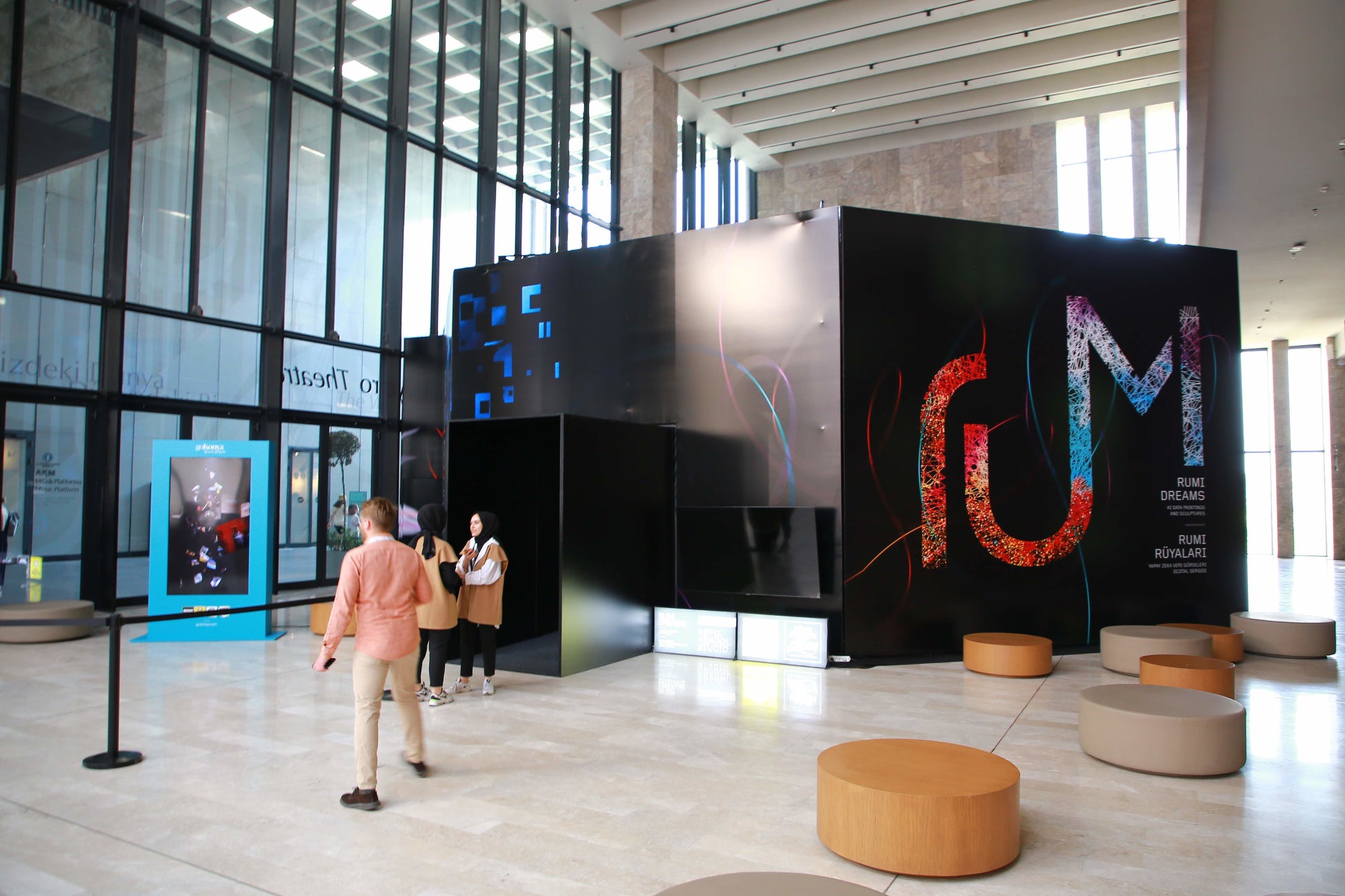 この新しい多感覚アートワークは、13世紀の神秘主義者メヴラーナ・ジェラーレッディン・ルーミーの膨大な関連資料を、AIベースの機械学習アルゴリズムによって視覚化することで生み出されています。伝説の神秘主義者ルーミーの750回目の命日を記念して制作されたこのデジタルインスタレーションは、イスタンブルの象徴であるアタテュルク文化センター(AKM)での公開以来、大きな関心を集めました。「ルーミー・ドリームズ」は、ルーミーの世界観を幅広い層に伝えることを目的に、動き、光、音による6分半のイマーシブ(没入型)体験を提供しました。