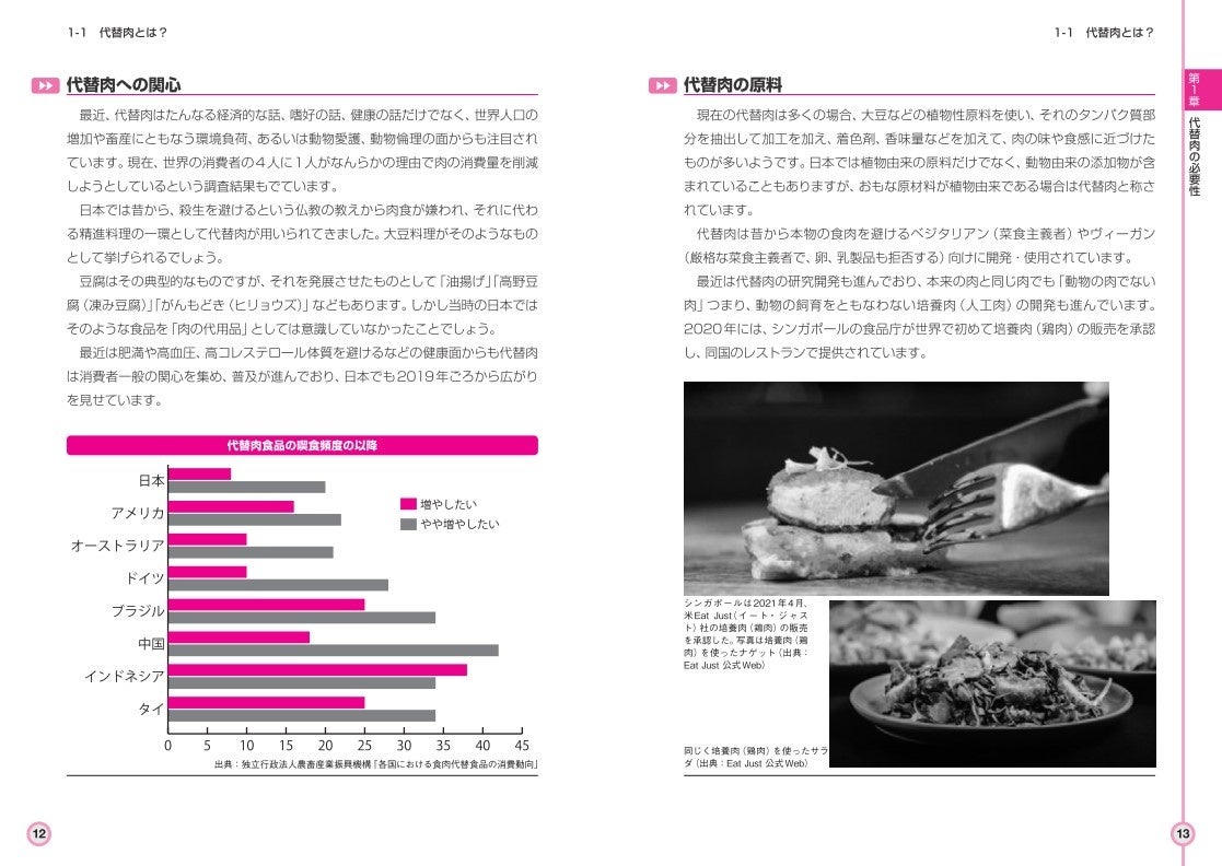 食糧危機の解決、環境負荷の低減、家畜の犠牲のない社会の実現に欠かせない持続可能なタンパク質、「代替肉」の基礎から最新動向までを、豊富な図や写真、本誌独自調査データなどを使ってわかりやすくお届け!