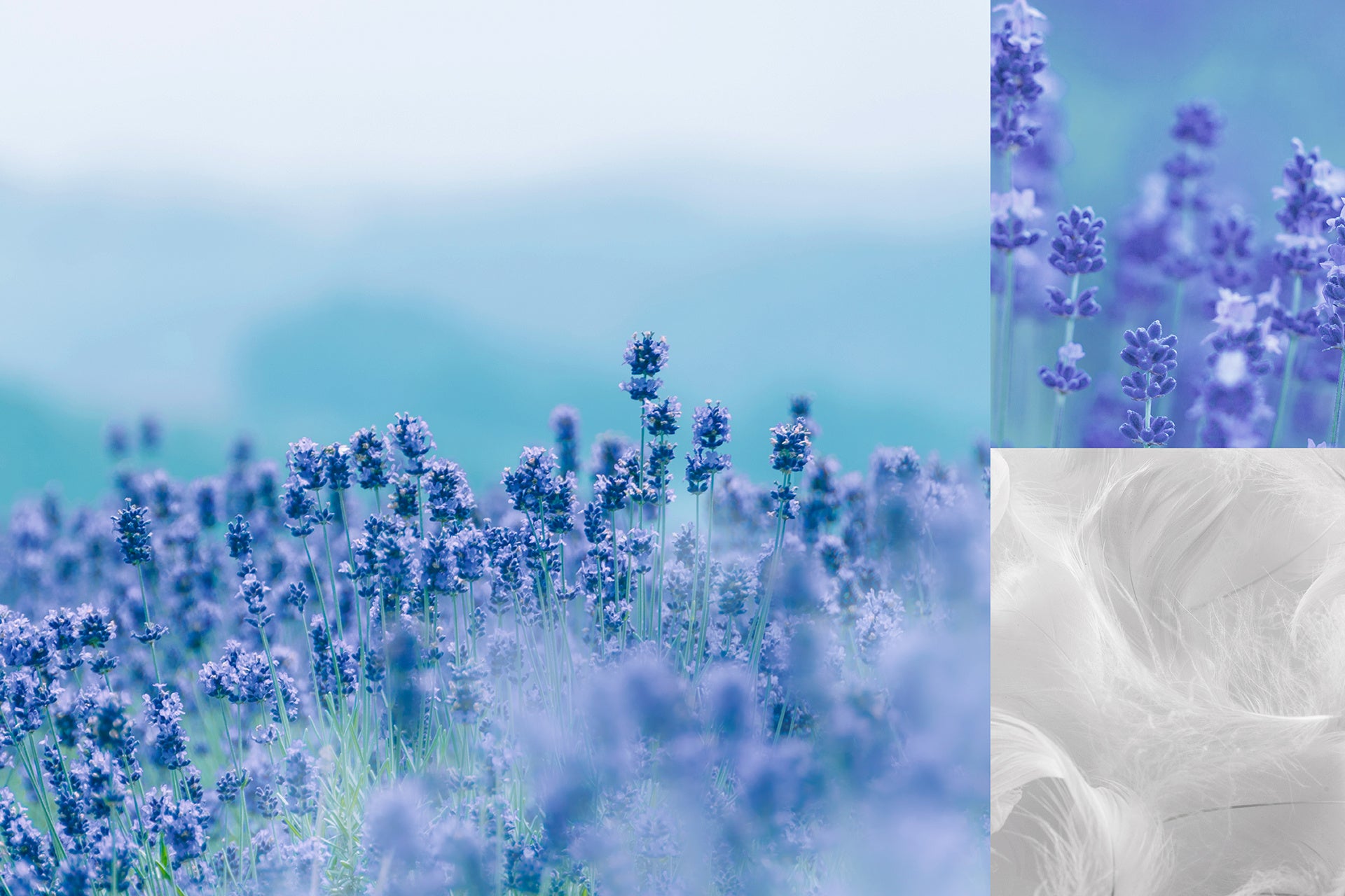 夏空のもと、大地を青紫色に染める「ラベンダー」。開花直前の蕾に満ちた花の香りは心地よく漂い、穏やかな時間を感じさせてくれる。富良野の広大な土地で、太陽を燦々と浴びて育ったラベンダーから採取した精油を配合し、みずみずしく爽やかな、ラベンダーそのものの香りに創り上げました。
