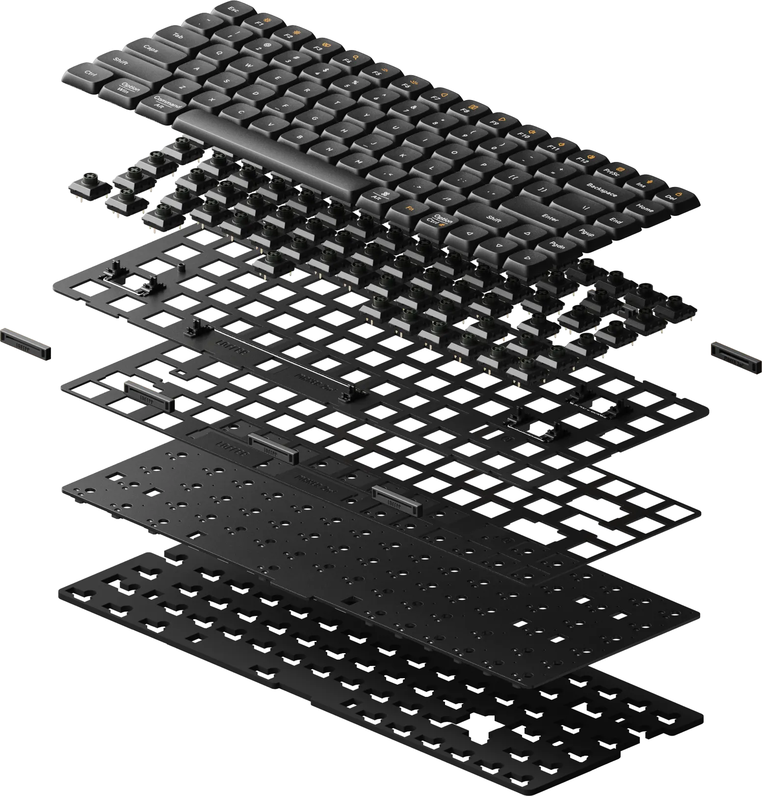 更に最もスムーズなキーボード体験を実現するため、単にスイッチに関連する問題を解決するだけではなく、伝統的なメカニカルキーボードで広く使用されているガスケットマウントに着目。ロープロファイルキーボードでは世界初となるガスケットマウントの搭載を実現しました!スイッチをシームレスに統合し、キープレスの過度な強度を低減することで、より快適なタイピング感覚に。コンパクトなロープロファイルキーボードの難しさにもかかわらず、これら二つの要素をうまく組み合わせて、完璧なキーボード、Flowを作り上げました。