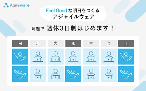 アジャイルウェア、給与はそのままで週休3日制(隔週)をスタート!