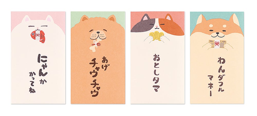 製品名:お年玉 干支柄/価格:121円(税込)/種類:4種/内容:5枚入/製品寸法:70×120mm