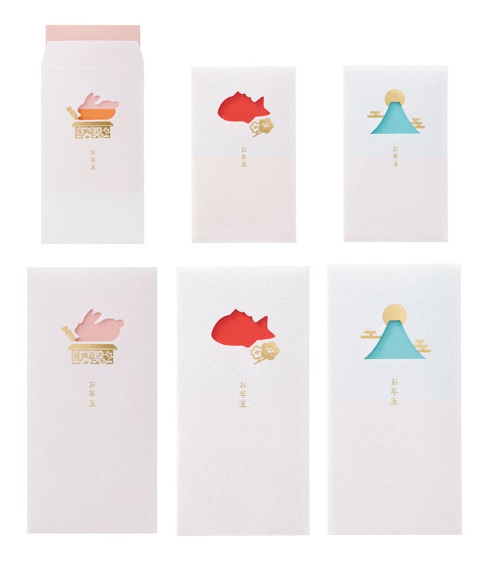 製品名:窓のし袋 お年玉/価格:330円(税込)/種類:3種(うさぎ、鯛、富士山)/内容:2枚入/製品寸法:83×168mm