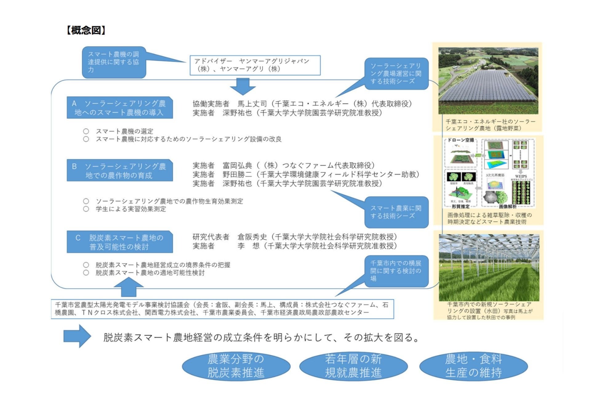 近年では、千葉大学大学院社会科学研究院倉阪秀史教授を代表者とする研究プロジェクト「ソーラーシェアリングを活用した自立型脱炭素スマート農地の確立と展開」に、研究メンバーとして参画し、下記の実証実験を行っております。