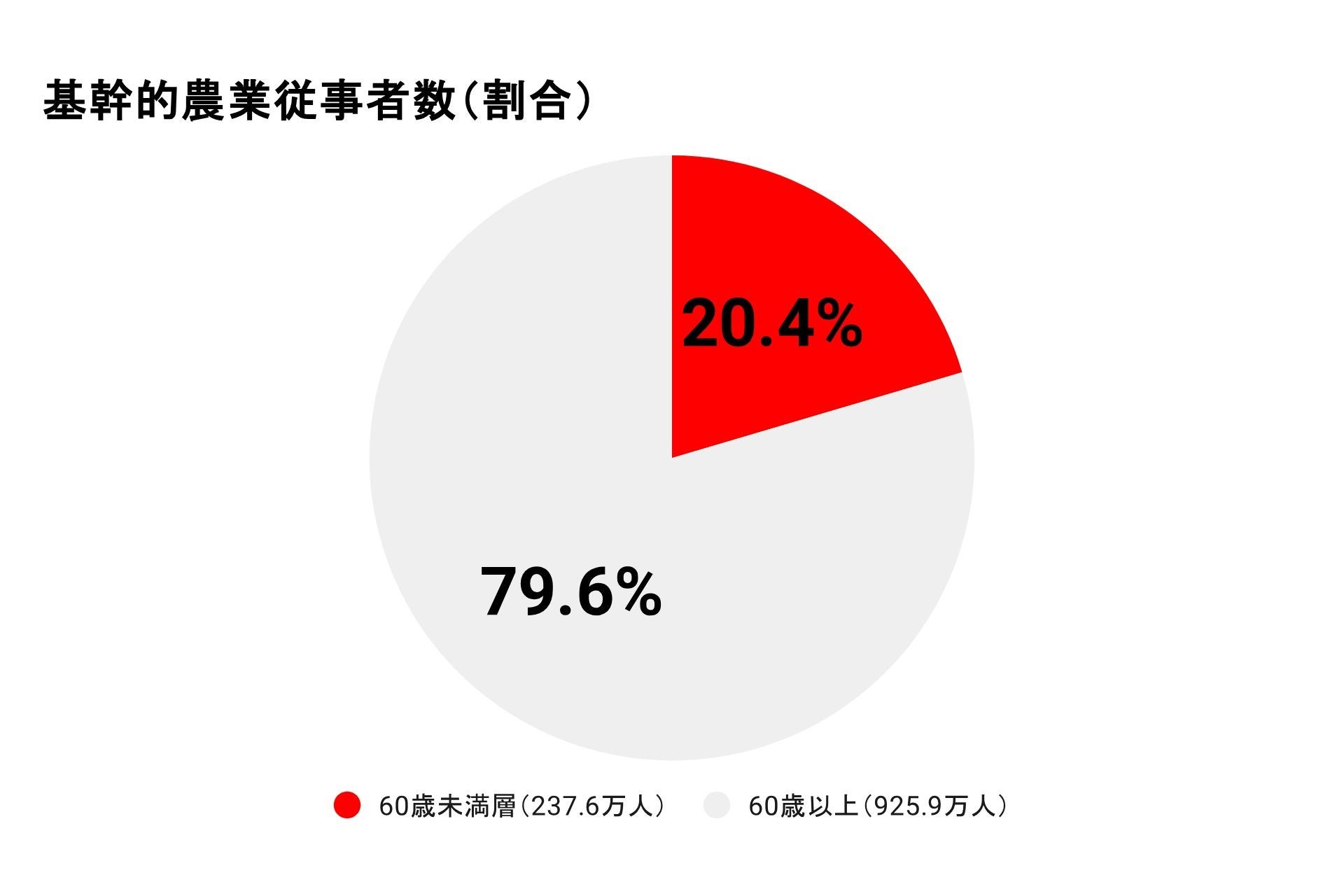 また、令和5(2023)年の基幹的農業従事者の平均年齢は68.7歳となっており、高齢化が進行しているとともに(図表3)、20年後の基幹的農業従事者の中心となることが想定される60歳未満層は、全体の約2割の24万人程度にとどまっています(図表4)。