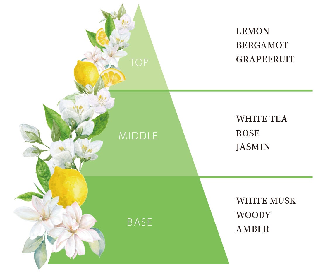 爽やかなシトラスやほんのり甘みのある若葉の香りと