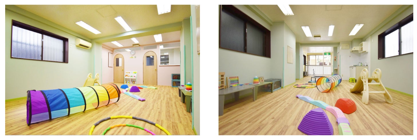 JR中央線・西武多摩川線の武蔵境駅北口から徒歩3分と利便性の高い場所に位置しております。事業所内は広々としたきれいな訓練指導室をご用意。明るく開放的な場所で、からだ全体を使って表現をしていく。のびのびと遊べる空間をご用意しています。