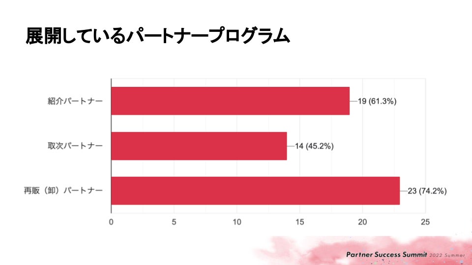 「PartnerSuccess Summit 2022 summer」にご参加いただいた方々へのアンケート結果は上記となります。