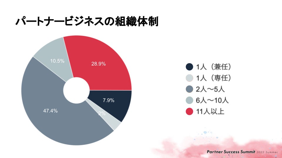 また、2番目に割合の多い回答は「11人以上」でした。3年以上パートナービジネスに取り組んでいる企業は、組織拡大を行い会社全体でパートナー販売に注力しているようです。
