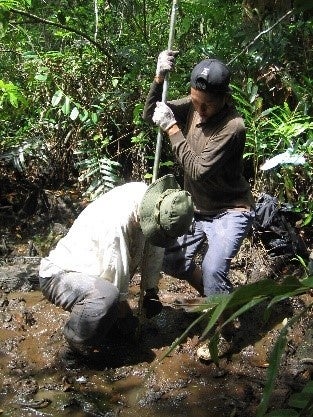 泥炭地水位のモニタリング風景