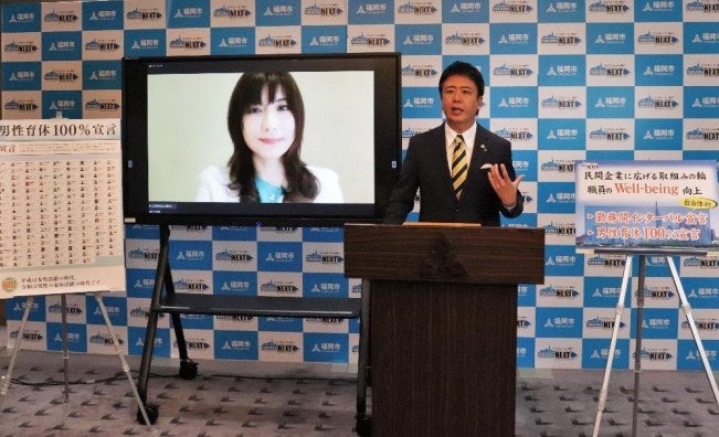 そしてこのたび、2022 年 9 月 1 日に福岡県福岡市(市長:高島宗一郎)が両宣言に賛同、記者会見を 行いましたことをご報告いたします。記者会見では、高島宗一郎市長より福岡市の取組みについての話 を、当社代表取締役社長 小室淑恵からは男性育休が少子化対策つながる理由や勤務間インターバルが 生産性向上に不可欠である背景を説明しました。
