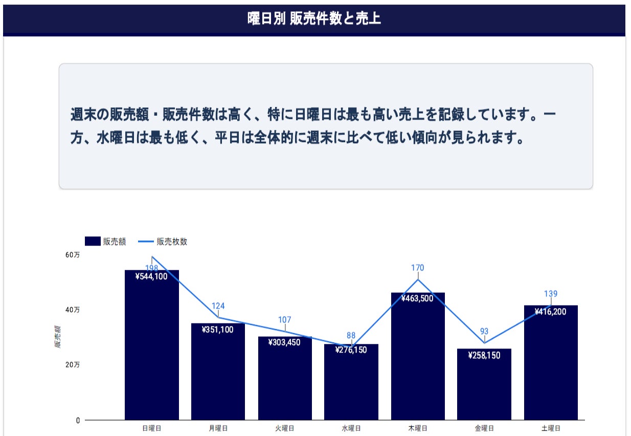 ・各種予約、販売データの売上比較、過去実績との比較をレポート