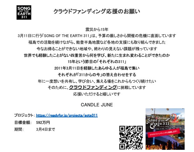 イベント名: SONG OF THE EARTH 311 - FUKUSHIMA 2026-