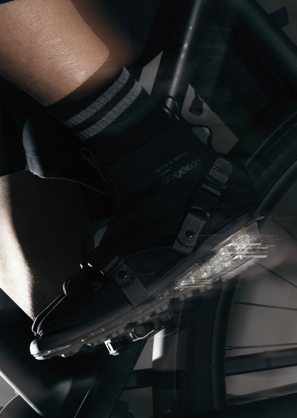 今回新たにundaにアジャスターを搭載し、オリジナル足袋と脱着可能に。 これはかつて日本の伝統的な履物「雪駄」を脱げなくするために、足へ紐でくくりつけていた「雪駄止め」から着想を得たものです。