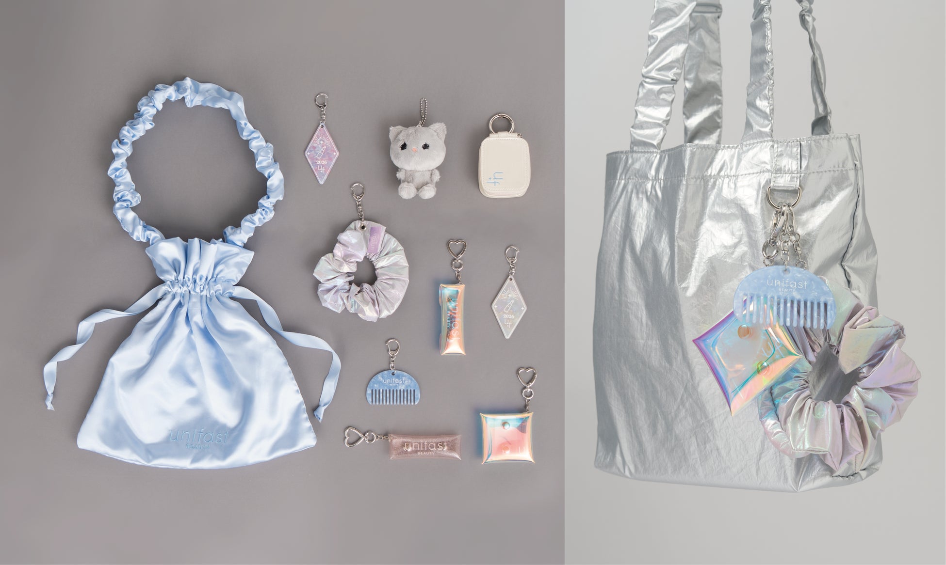 出展アイテムは、アパレル分野から着想を得た素材感や形状を取り入れたバッグ類を中心に、ノベルティとしても採用しやすい小物雑貨をラインナップ。バッグに付けてデコレーションを楽しめるよう、小型のぬいぐるみやキーホルダー、PVC素材のポーチ、リップケースなど、アパレルと親和性の高いアイテムを組み合わせて提案しています。バッグを強みとするユニファーストならではの視点を活かした構成です。