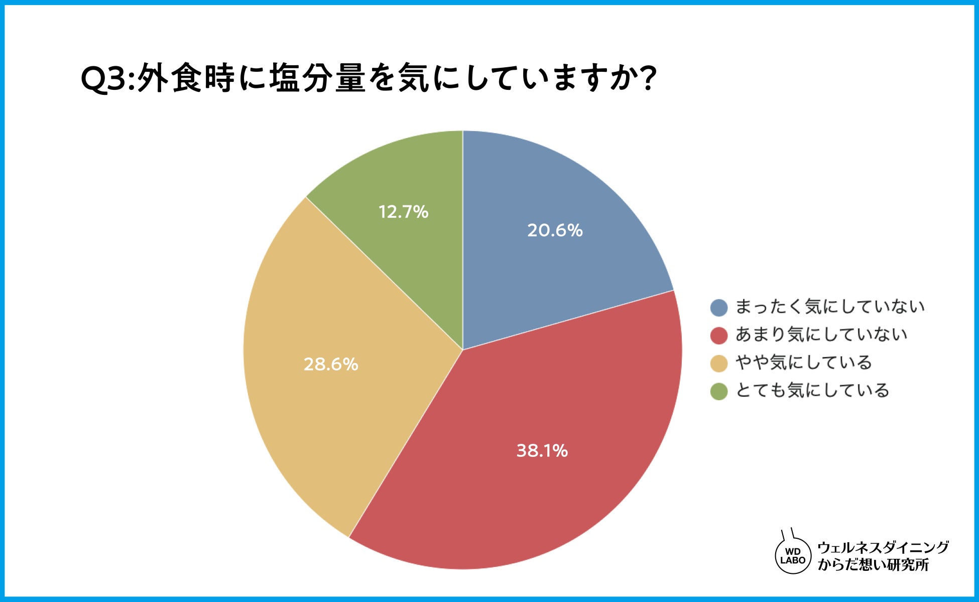 「あまり気にしていない」「まったく気にしていない」が58.7%にのぼり、外食時には、普段より減塩意識が下がる傾向。