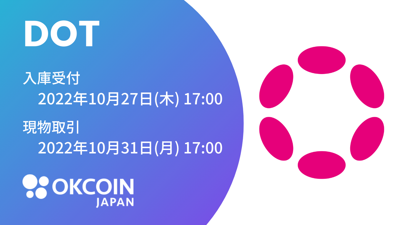当社は、OKCoinJapan(暗号資産取引所)にて、『ポルカドット(DOT)』を、2022年10月27日(木)に取り扱い開始することをお知らせいたします。これにより、OKCoinJapanは、19種類の暗号資産を取り扱うこととなります。