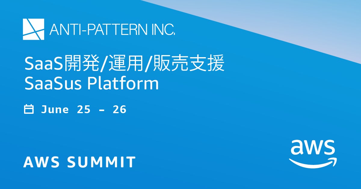 「日本のソフトウェアエンジニアを憧れの職業へ」を理念に掲げる株式会社アンチパターン(本社:東京都港区、代表取締役 小笹 佑京、以下当社)は、アマゾン ウェブ サービス ジャパン合同会社が主催する日本最大の "AWS クラウドを学ぶイベント"「AWS Summit Japan 2025」に、Silver Sponsorsとして協賛し、代表 小笹のセッション登壇及び、BtoB SaaS 開発/運用/販売を支援する「SaaSus Platform」でブース出展することをお知らせします。