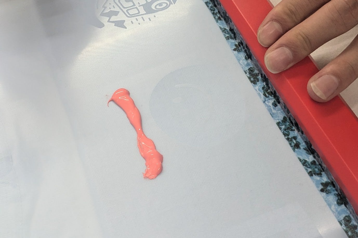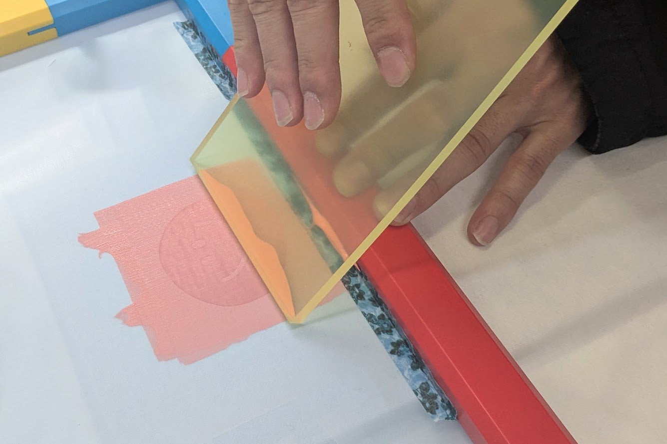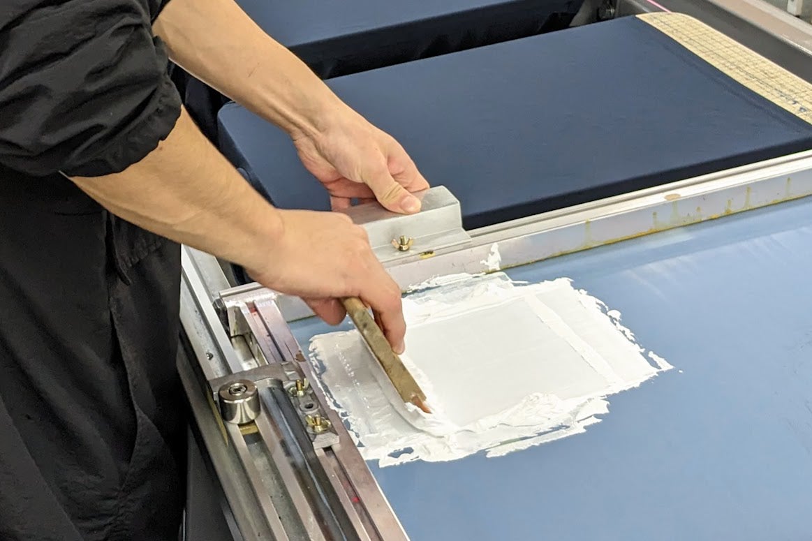 インクを通すメッシュ状の「版(型)」を使い、デザイン部分に